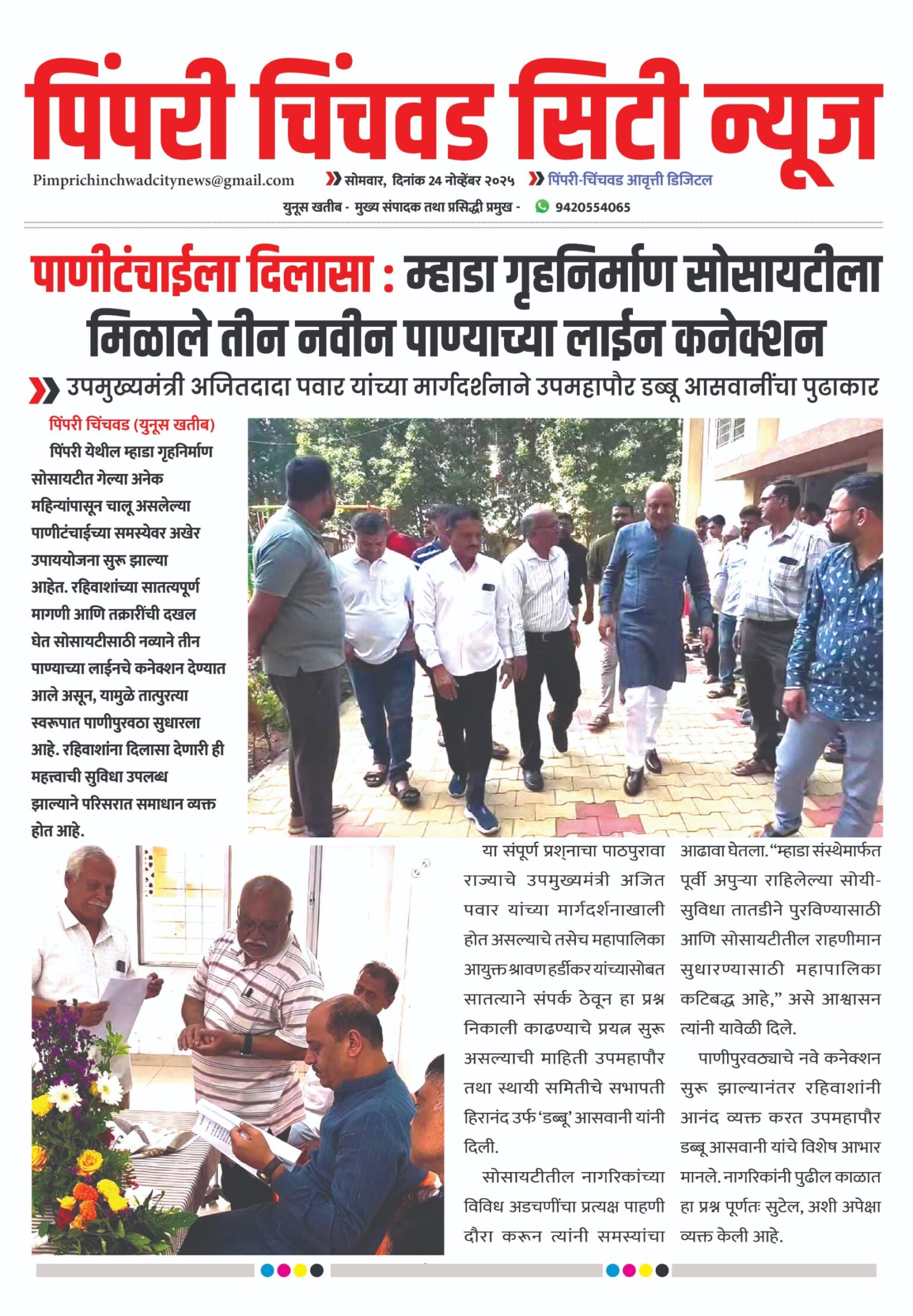 उपमहापौर डब्बू आसवानींच्या पुढाकाराने म्हाडा सोसायटीला तातडीचा पाणीसुधार