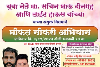 चिंचवड गावात शनिवार दि. ८ नोव्हेंबर रोजी भव्य मोफत नोकरी अभियान – युवा नेते सचिन दोनगहू आणि लाईट हाऊस यांच्या संयुक्त विद्यमाने उपक्रम