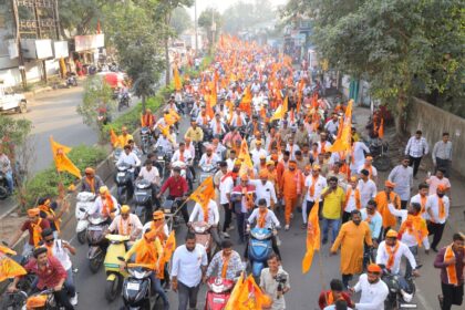 हिंदूत्त्ववादी आमदार महेश लांडगे यांचा ‘रेकॉर्ड ब्रेक’ सोहळा – भगव्या पताका, वांद्यांचा निनाद अन् प्रचंड उत्साहात मिरवणूक.