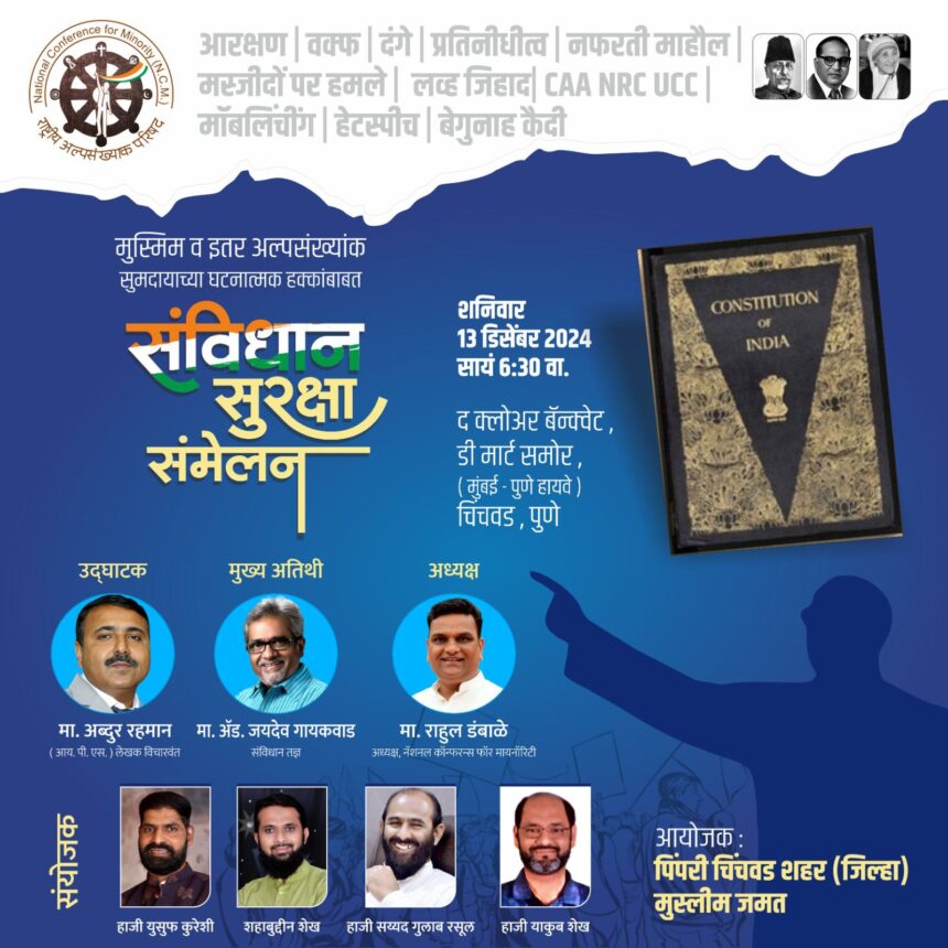 शुक्रवारी चिंचवड येथे संविधान सुरक्षा परिषद, निवृत्त आयपीएस अब्दुल रहमान व माजी आमदार ॲड. जयदेव गायकवाड यांची प्रमुख उपस्थिती.