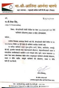 पिंपरी चिंचवड दिनांक १८ सप्टेंबर २०२४ (पीसीसी न्यूज प्रतिनिधी) मोशी बोऱ्हाडेवाडी, मोशी येथील बारणे पाटील चौक परिसरातील गट क्रमांक २३० (१३४७) येथील ६४ गुंठ्यावर महापालिकेचे आरक्षण आहे. या ठिकाणी पालिकेचे क्रीडांगण, उद्यान व मंदिर होण्याबाबत पिंपरी-चिंचवड राष्ट्रवादी शहर-जिल्हा उपाध्यक्ष अतिश बारणे यांची आयुक्त शेखर सिंह यांच्याकडे निवदेनाद्वारे मागणी करण्यात आली होती.
