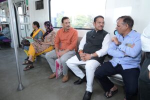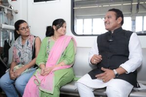 खासदार बारणे यांनी मेट्रोमध्ये साधला प्रवाशांशी संवाद.