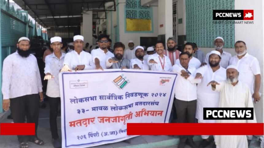 खराळवाडी येथील जामा मशिद परिसरात घेण्यात आलेल्या कार्यक्रमात नोडल अधिकारी मुकेश कोळप,प्रफुल्ल पुराणिक यांनी लोकसभा मतदानाबाबत माहिती दिली,यावेळी उपस्थित बांधवांनी मतदानाची शपथ घेतली, मौलाना अझमत खान यांनी सर्वांना मतदानाची शपथ दिली, यावेळी अखिलभाई मुजावर, अझिज शेख, अमिन शेख, शोएब मुजावर, जैद अकबर शेख, कमल अन्सारी, मुराद खान, जुबेर पटेल,जावेदभाई सय्यद आदी शेकडो बांधव उपस्थित होते.