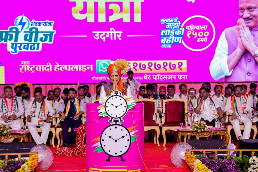 अल्पसंख्याकांना योग्य प्रतिनिधित्व देण्याचे उपमुख्यमंत्री अजित पवार यांचे आश्वासन, अल्पसंख्याकांना समन्यायी राजकीय प्रतिनिधित्व देण्यासाठी आम्ही सक्रीयपणे काम करत आहोत: उपमुख्यमंत्री अजित पवार यांचे उदगीर येथे जनसन्मान यात्रेदरम्यान वक्तव्य.राष्ट्रवादी काँग्रेसचे राष्ट्रीय अध्यक्ष आणि उपमुख्यमंत्री अजित पवार यांची जनसन्मान यात्रा आज लातूर जिल्ह्यातील उदगीर विधानसभा मतदारसंघात पोहोचली. जनसंपर्क कार्यक्रमाला परिसरातील लोकांचा उत्स्फूर्त प्रतिसाद मिळाला. उदगीरचे विधानसभेत प्रतिनिधित्व करणारे क्रीडा व युवक कल्याण व बंदर विकास मंत्री संजय बनसोडे उपमुख्यमंत्र्यांसमवेत उपस्थित होते.अंगणवाडी सेविकांचे मानधन १० हजार रुपयांवरून १५ हजार रुपये करून महाराष्ट्र सरकारने प्रलंबित मागण्या पूर्ण केल्याची घोषणा यावेळी अजित पवार यांनी केली. अल्पसंख्याकांना योग्य प्रतिनिधित्व मिळावे, यासाठी आम्ही सक्रीयपणे काम करत आहोत,असे यावेळी अजित पवार यांनी सांगितले.तसेच राष्ट्रवादीचे अल्पसंख्याक जिल्हाध्यक्ष असून यामध्ये डॉ. अफसर शेख व नाझेर काझी हे उत्तम काम करत आहेत असा पुनरुच्चार त्यांनी केला. आम्ही सर्वांसोबत सर्वसमावेशकपणे काम करण्यास कटिबद्ध आहोत, आम्ही सर्व भारतीय आहोत. उदगीर हे भारताचे सार प्रतिबिंबित करते आणि आपण सामाजिक सलोखा राखला पाहिजे, असे देखील अजित पवार यावेळी म्हणाले.या भागातील विकासाबाबत बोलताना ते म्हणाले की, पंचायत समिती, तहसील कार्यालय आणि प्रशासकीय इमारतीसह अनेक इमारतींचे आम्ही उद्घाटन केले आहे. उदगीरला कृषी वस्तू व्यापार केंद्र म्हणूनही मान्यता आहे. मंत्री संजय बनसोडे यांनी या भागाच्या विकासासाठी केलेल्या प्रयत्नांचे कौतुक करताना अजित पवार म्हणाले की, जनतेने दिलेल्या पाठिंब्यामुळे आणि आपल्या कामगिरीतून त्यांनी स्वत:ला सिद्ध केले आहे. आम्ही त्यांच्या कामावर खूश आहोत असे यावेळी पवार म्हणाले. संजय बनसोडे यांना मतदान करण्याची विनंती अजित पवार यांनी उपस्थित जनतेला केली. उदगीरच्या सांस्कृतिक वारसाबद्दल बोलताना ते म्हणाले, उदगीरला समृद्ध सांस्कृतिक आणि राजकीय वारसा लाभला असून प्राचीन काळापासून तो आध्यात्मिक महत्त्वासाठी ओळखला जातो. लातूर विमानतळाच्या विकासासाठी नाइट लँडिंग सुविधेसह सरकार प्रयत्नशील असल्याची माहिती अजित पवार यांनी यावेळी दिली.महाराष्ट्राचा विकास करायचा असेल तर जनतेच्या पाठिंब्याची गरज आहे, असे सांगून आगामी विधानसभा निवडणुकीत राष्ट्रवादी व महायुतीला मतदान करण्याचे आवाहन त्यांनी मतदारांना केले. तुम्ही आमच्या पाठीशी उभे राहिलात तर आम्ही तुमच्या आयुष्यात आमूलाग्र बदल घडवून आणू, असे आश्
