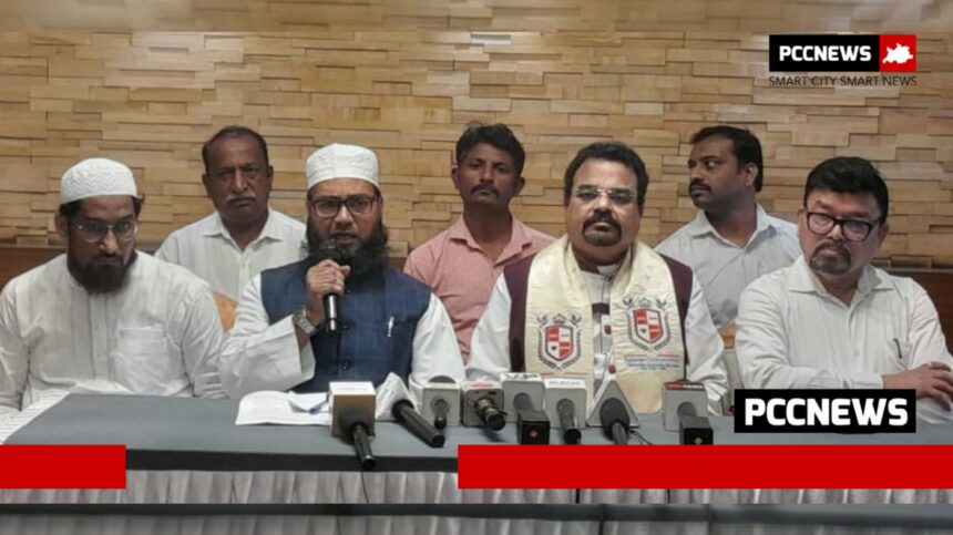 सामाजिक सलोखा ऐक्य परिषदेच्या वतीने बुधवारी चिंचवड येथे आयोजित केलेल्या पत्रकार परिषदेत बिशप सॅम्युअल साखरपेरकर, पास्टर नितीन काळे, शौल विश्वास कांबळे आदींसह विविध समाज प्रतिनिधी उपस्थित होते.